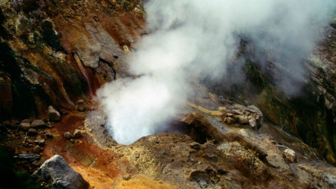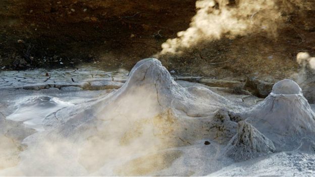 aquecidos por intensa atividade geotérmica nas entranhas do planeta. A rocha é