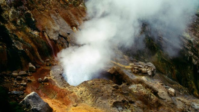 mais quente piscina da caldeira tem temperatura de 97ºC e, em uma expedição